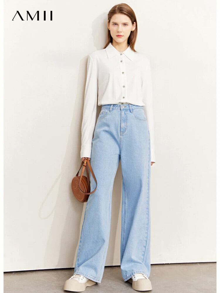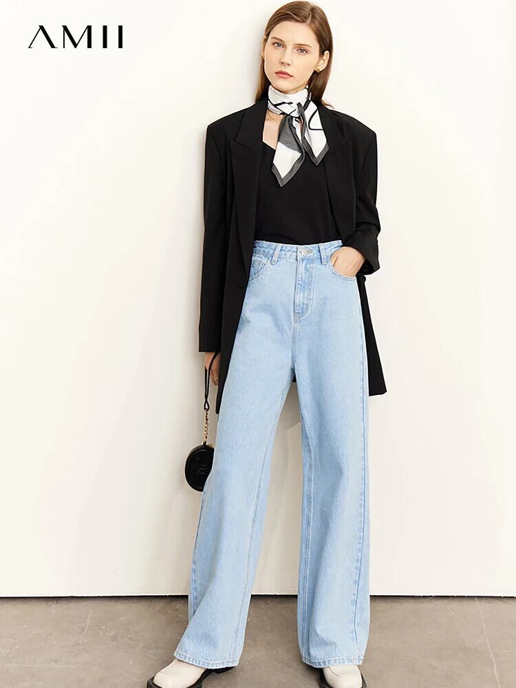送料無料 アパレル AMII ミニマリズムジーンズ秋の女性ルーズワイドレッグパンツライトブルーストレートパンツストリートボトムス 12241048 オータム 秋物 ワイドパンツ AE121222327340982047