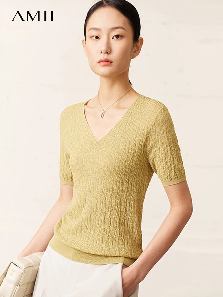 送料無料 アパレル AMII ミニマリズム 2023 夏ソリッドスリムニットプルオーバーレディースニット V ネックシックフォールドレディース 72342003 サマー 夏物 Vネック ソリッドカラー AE121222349573832476 | mihatudai(みはつばい)ネットショッピングならmihatudai