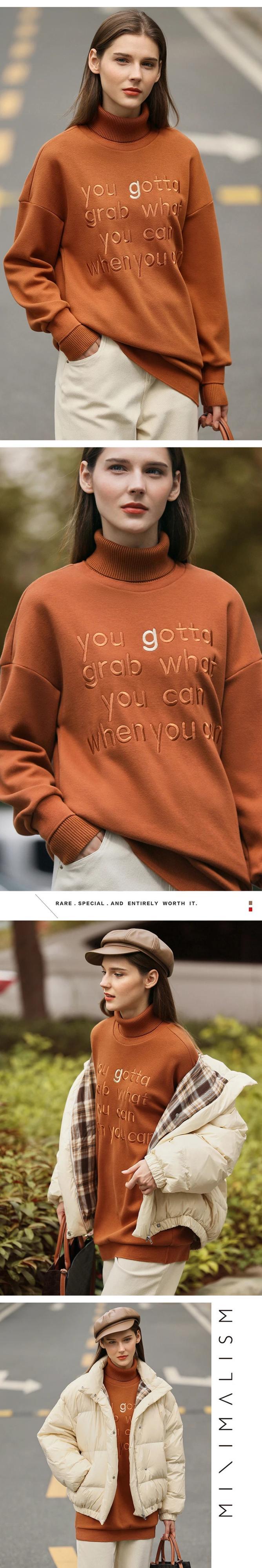 送料無料 アパレル AMII ミニマリズムトレーナー女性 2022 冬刺繍タートルネックルーズ通勤固体わずかなストレッチプルオーバートップス 12130559 ウィンター 冬物 ソリッドカラー AE121222344778461080