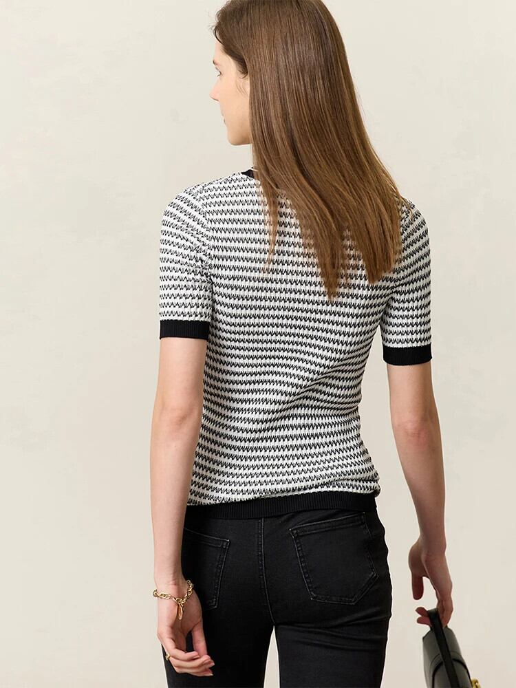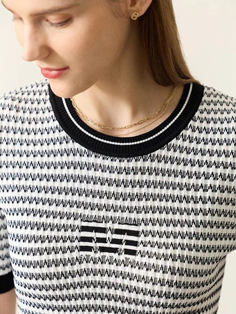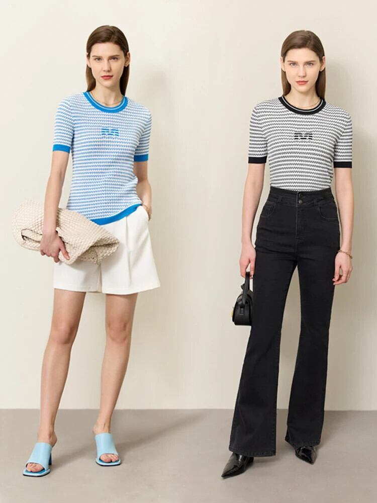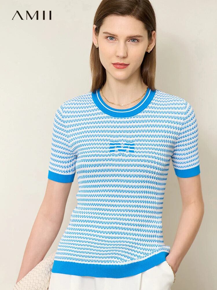 送料無料 アパレル AMII ミニマリズム レディース ニット 2023 夏 O ネックコントラストカラーストライプ半袖セーター 12342589 ショート ハーフスリーブ サマー 夏物 Oネック AE121222342117398598 | mihatudai(みはつばい)ネットショッピングならmihatudai