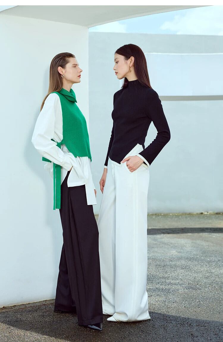 送料無料 アパレル AMII ミニマリスト冬セーター女性 2023 スリムフィットモックネックコントラストステッチ不規則なサイド裾ニットトップ 12353072 AE121222387432594154 | mihatudai(みはつばい)ネットショッピングならmihatudai
