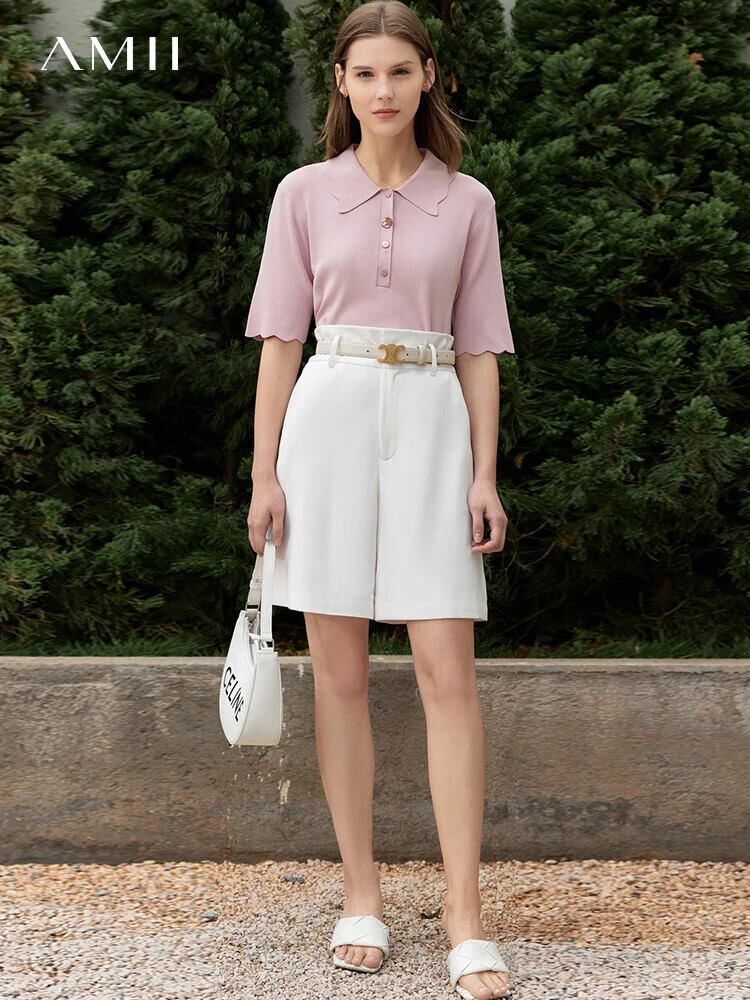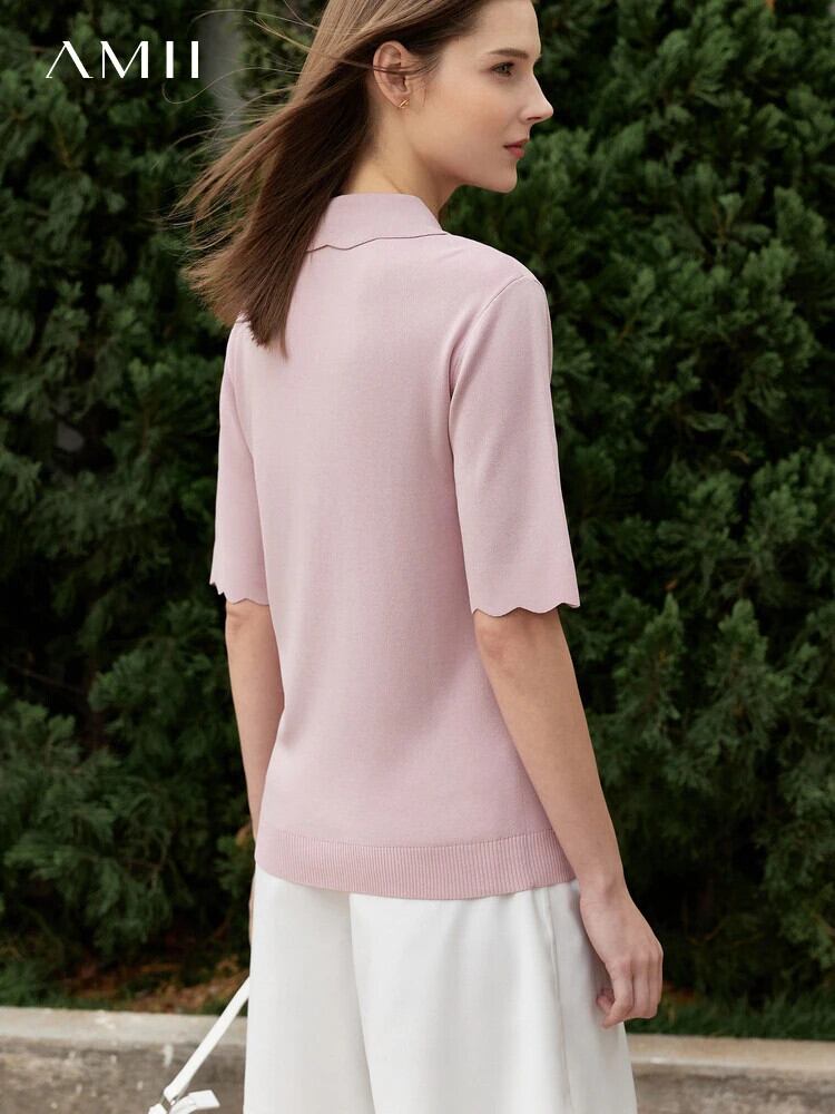 送料無料 アパレル Amii ミニマリストサマーニット Tシャツ女性 2022 ソリッドルーズポロネック半袖シングルブレストトップス 12240629 ショート ハーフスリーブ 夏物 ソリッドカラー AE121222362935788520 | mihatudai(みはつばい)ネットショッピングならmihatudai