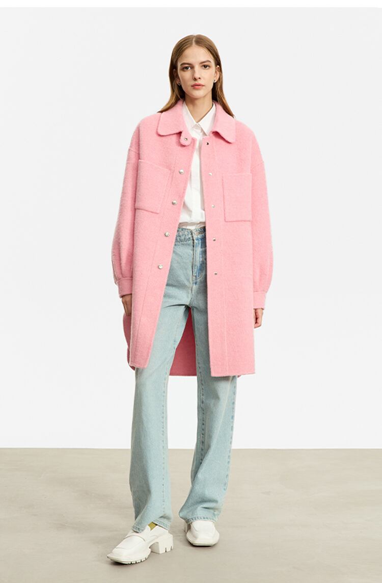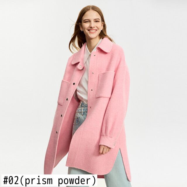 送料無料 アパレル AMII ミニマリストシャツスタイルウールコート女性 2023 冬ロング両面キャメルウールオフィスレディフルブレンド 12374001 ウィンター 冬物 会社 学校 通勤や通学にも AE12122238240622852