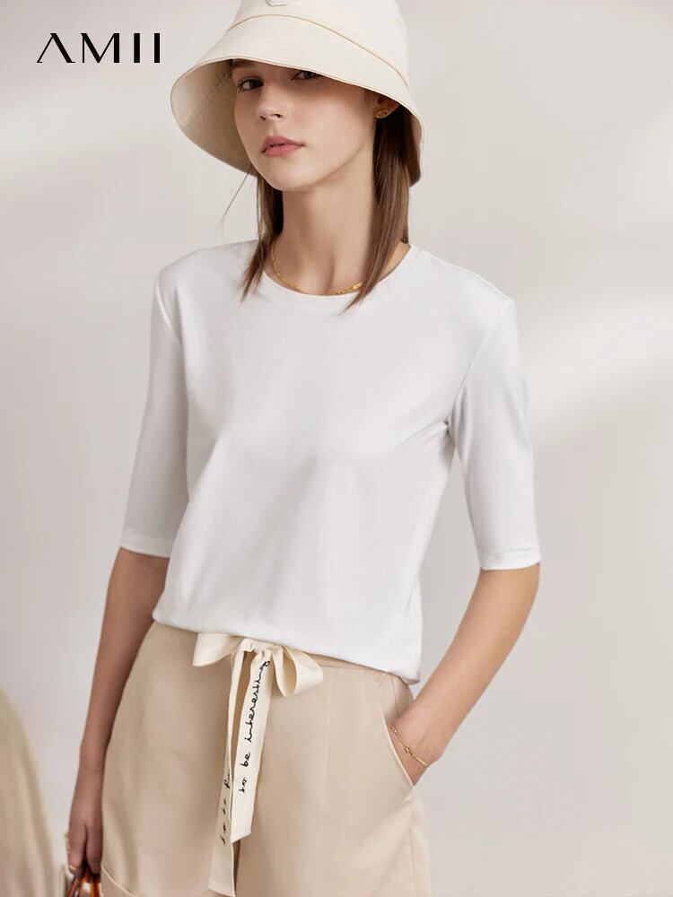 送料無料 アパレル AMII ミニマリズム Tシャツ女性 2023 夏氷磁器綿半袖夏 Tシャツ多用途トップス 12312009 ショート コットン ハーフスリーブ サマー 夏物 AE12122238249788765