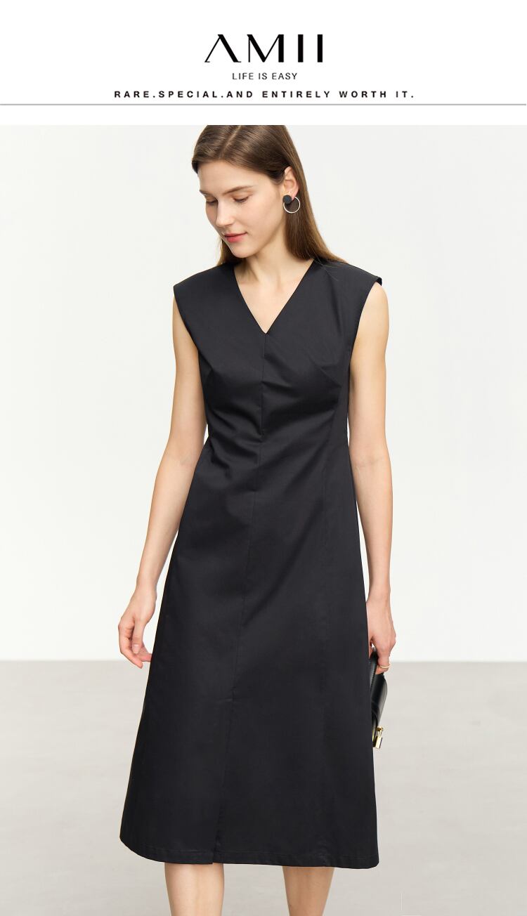 送料無料 アパレル AMII ミニマリズム 2023 女性のドレス夏 V ネックウエストノースリーブスリムミッドふくらはぎフレンチ A ライン黒固体 Vestidos 12372108 ブラック サマー 夏物 Vネック Aライン ソリッドカラー AE121222333667136379 | mihatudai(みはつばい)ネットショッピングならmihatudai