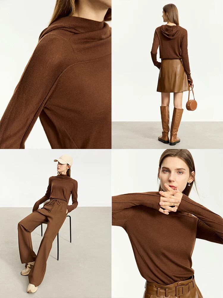 送料無料 アパレル AMII ミニマリストフード付きセーター女性 2023 秋スリムフィットコートハーフネック長袖ニットトップス 12354015 ロング オータム 秋物 AE12122231941374414 | mihatudai(みはつばい)ネットショッピングならmihatudai