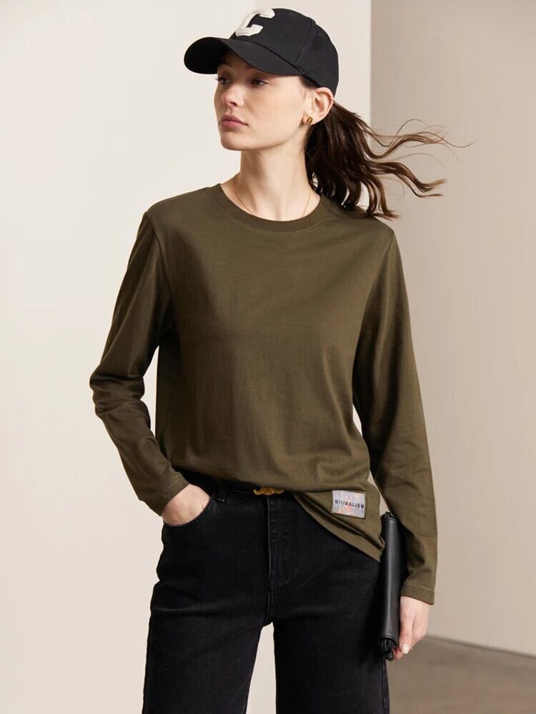 送料無料 アパレル AMII ミニマリズムブラウス女性 2023 春コットントップス長袖 Tシャツステッカー刺繍白ボトムシャツ 12341069 ロング ホワイト スプリング 春物 AE121222377578644609