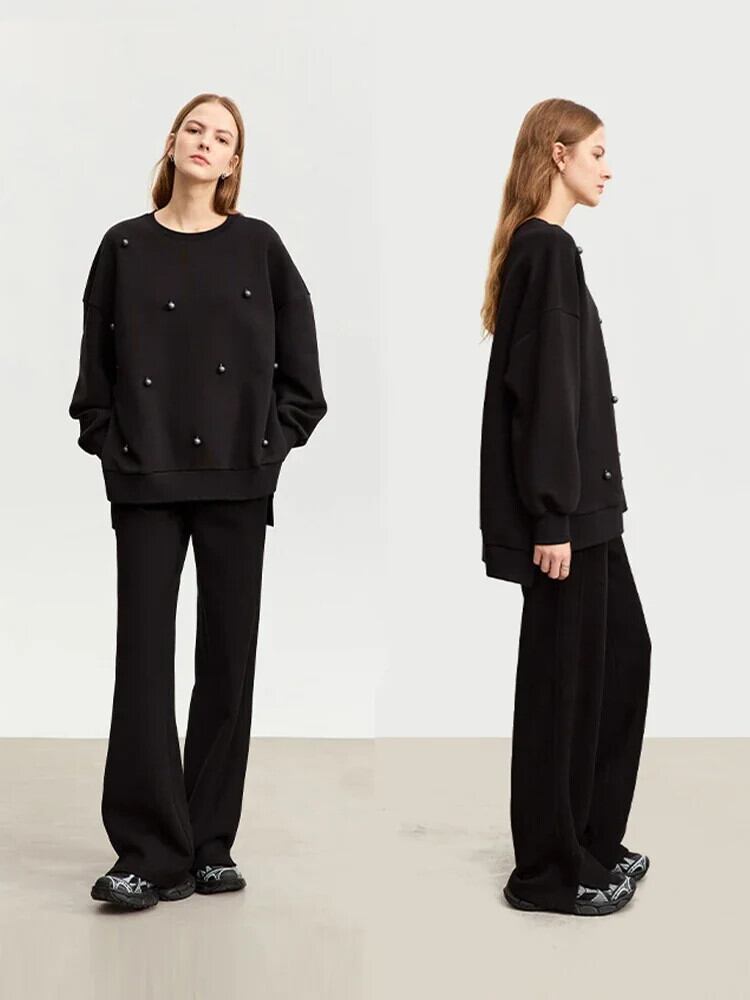 送料無料 アパレル AMII 特大トレーナー女性 2023 秋ルーズクルーネックプルオーバーソリッドスリット刺繍フレアトップ 12353110 レッド オータム 秋物 ソリッドカラー AE121222362758475062 | mihatudai(みはつばい)ネットショッピングならmihatudai