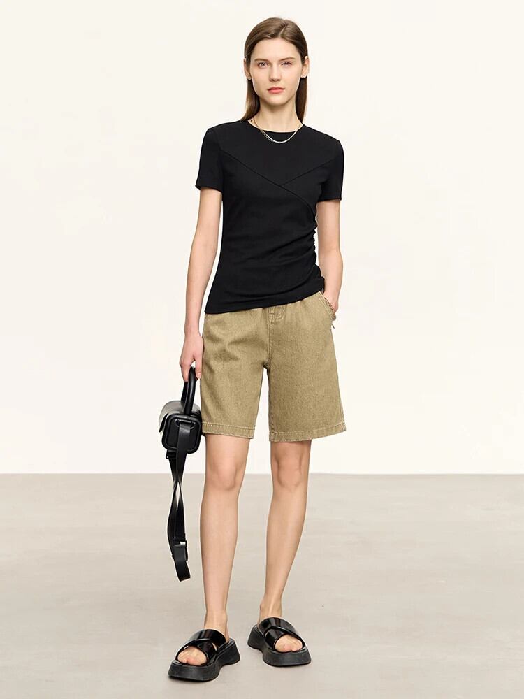 送料無料 アパレル AMII ミニマリズムストレートショーツ 2023 夏綿 100% デニムスタイルの女性のパンツ固体シックな Pantalones 12322161 コットン サマー 夏物 ブルマー ソリッドカラー AE121222315233929317 | mihatudai(みはつばい)ネットショッピングならmihatudai