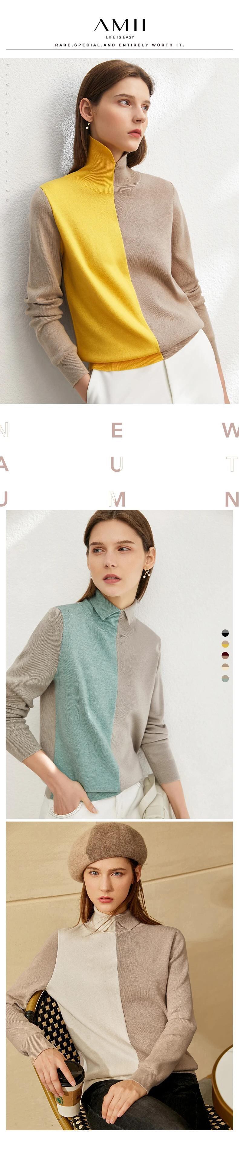 送料無料 アパレル Amii ミニマリズム女性セーターコントラストスプライスニットトップスポロ襟プルオーバー冬のセータートップス 12020348 ウィンター 冬物 AE121222326131548794 | mihatudai(みはつばい)ネットショッピングならmihatudai