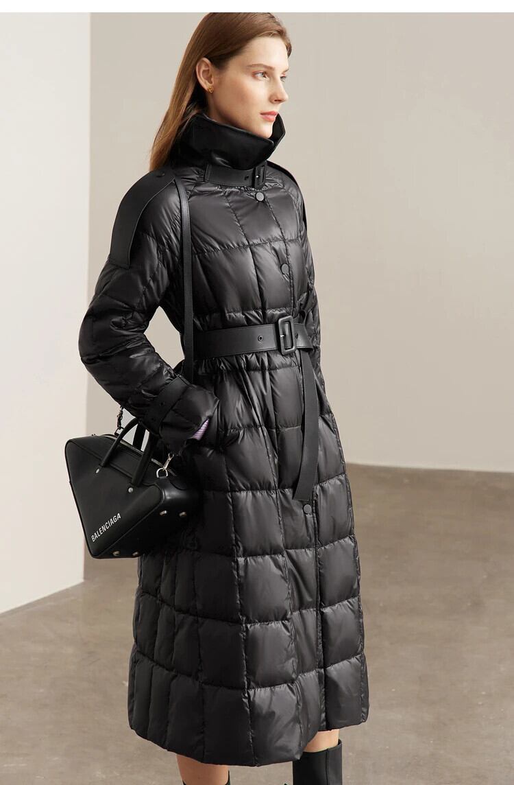 送料無料 アパレル AMII ミニマリストダックダウンジャケット女性 2023 ロングパーカーベルトスタンドカラー冬アウター 12344165 ウィンター 冬物 ハーネス AE121222362759807934