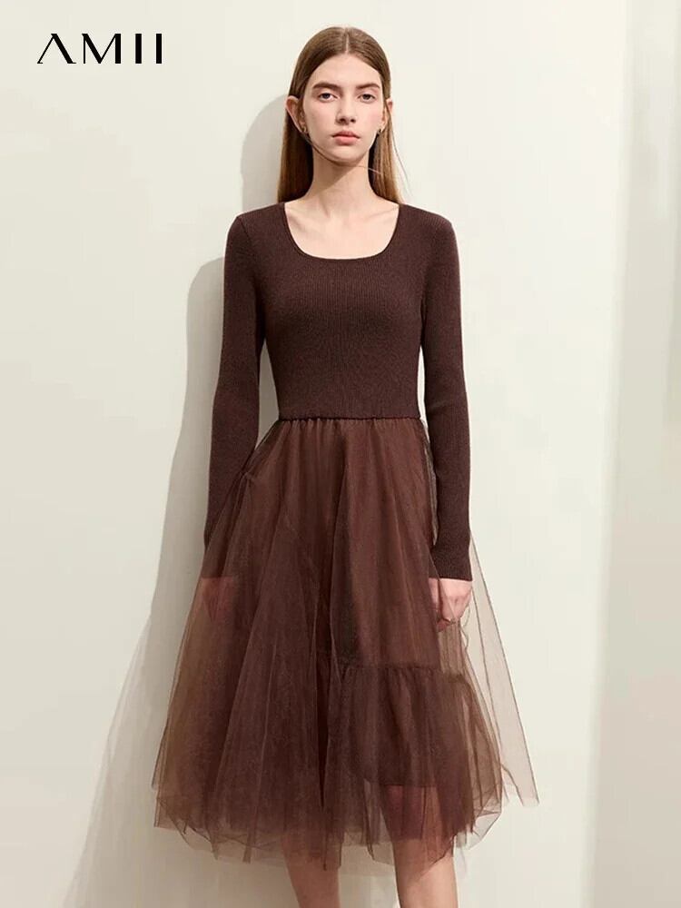送料無料 アパレル AMII ミニマリスト女性ドレス 2023 冬フレンチヴィンテージスクエアカラーパッチワークメッシュフェイク 2 A ライン Vestidos 12324040 ウィンター 冬物 Aライン スクウェア ビンテージ AE121222332319339925 | mihatudai(みはつばい)ネットショッピングならmihatudai