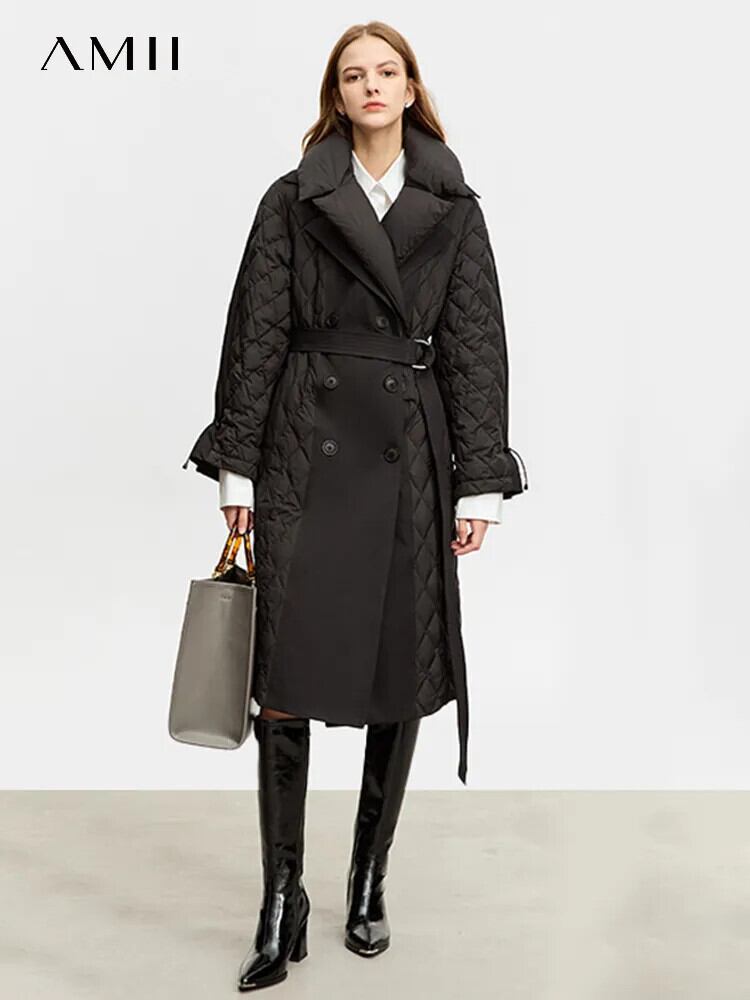 送料無料 アパレル AMII ミニマリスト 2023 冬のダウンコートの女性シンプルな暖かいロングダブルブレスト襟取り外し可能なジャケット 12324016 ウィンター 冬物 AE121222398020275465
