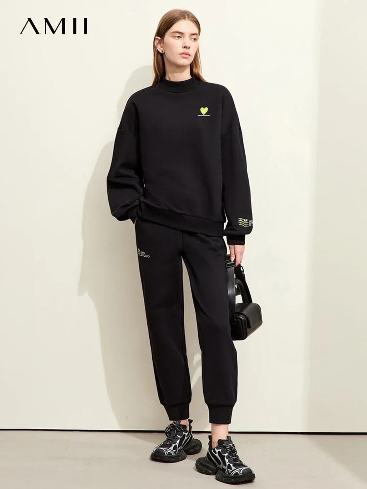 送料無料 アパレル AMII ミニマリスト女性プラスフリースパンツ冬スポーティな文字刺繍コントラストステッチズボンパンツ 12324111 ウィンター 冬物 AE121222390514367178 | mihatudai(みはつばい)ネットショッピングならmihatudai