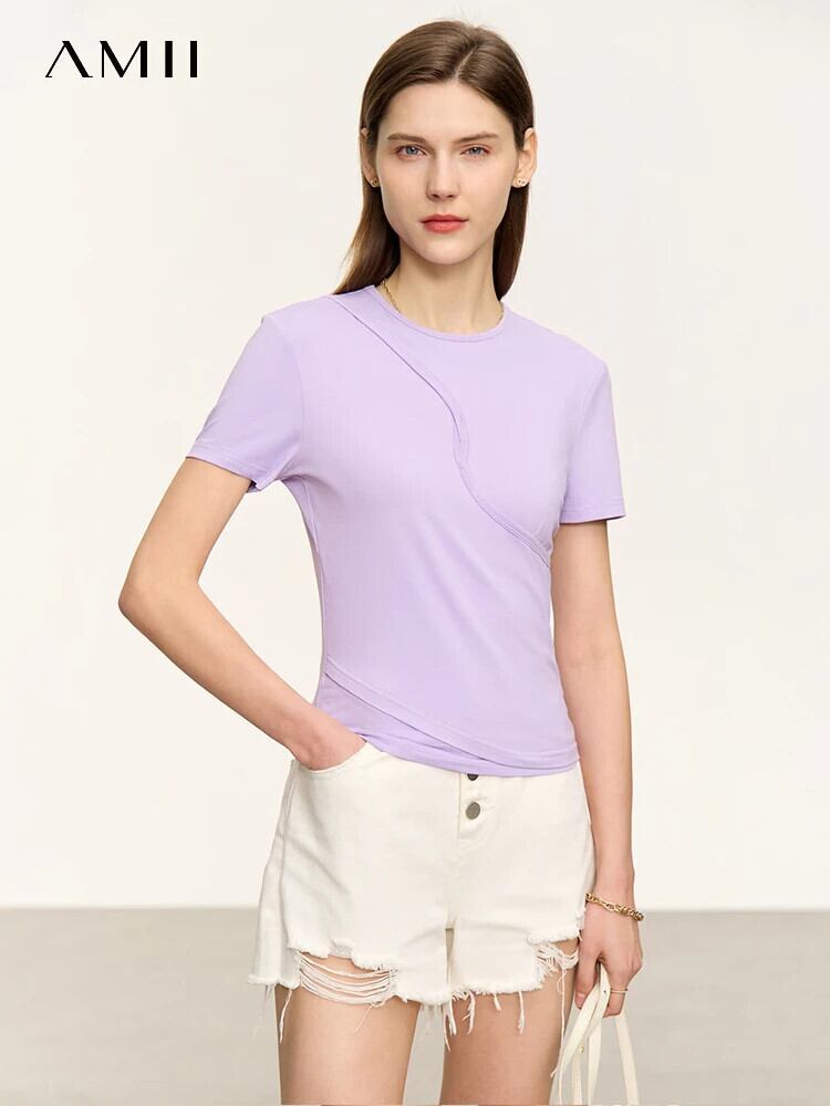 送料無料 アパレル AMII ミニマリズムソリッド Tシャツ 2023 夏半袖プルオーバースリムオフィスレディ Tシャツ女性 12342475 ショート ハーフスリーブ サマー 夏物 ソリッドカラー 会社 学校 通勤や通学にも AE121222350616798740 | mihatudai(みはつばい)ネットショッピングならmihatudai