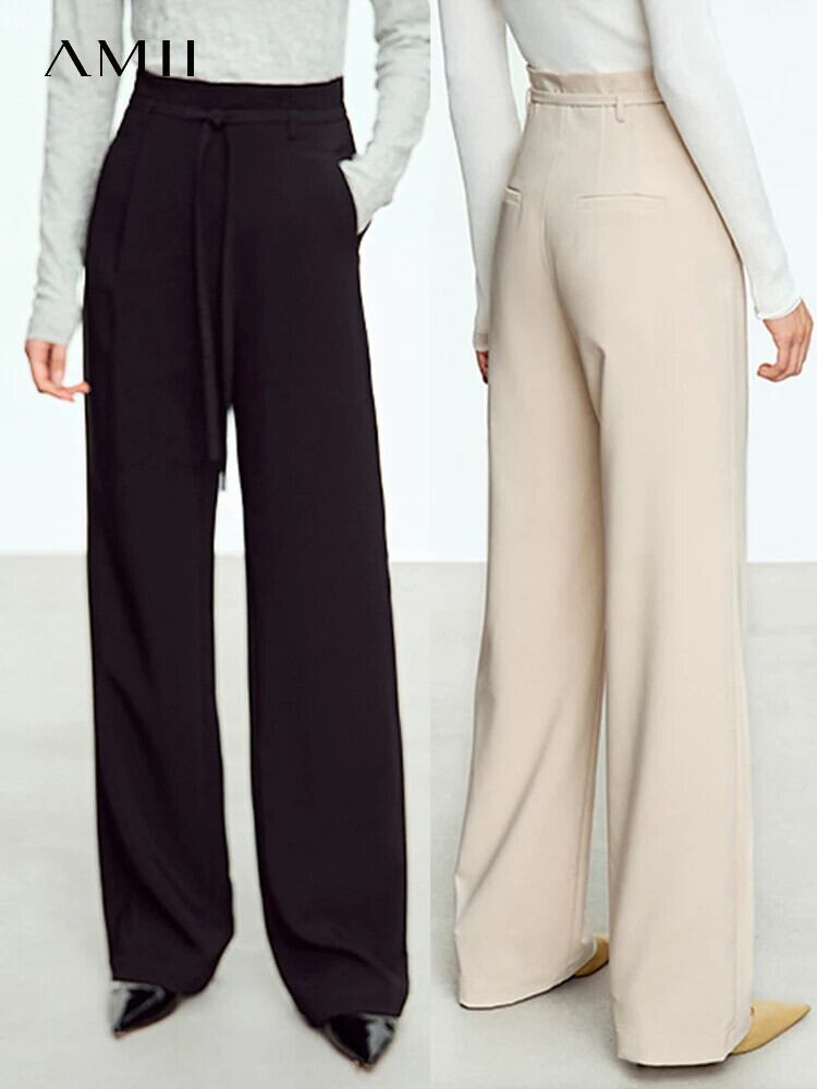 送料無料 アパレル AMII ミニマリスト 2023 秋の女性のパンツ通勤ハンサムウエストベルト床の長さのストレート黒ズボン 12343042 ブラック オータム 秋物 ハーネス AE121222340462745654 | mihatudai(みはつばい)ネットショッピングならmihatudai