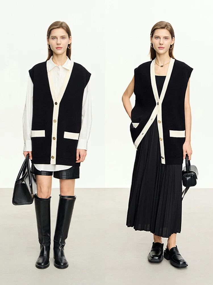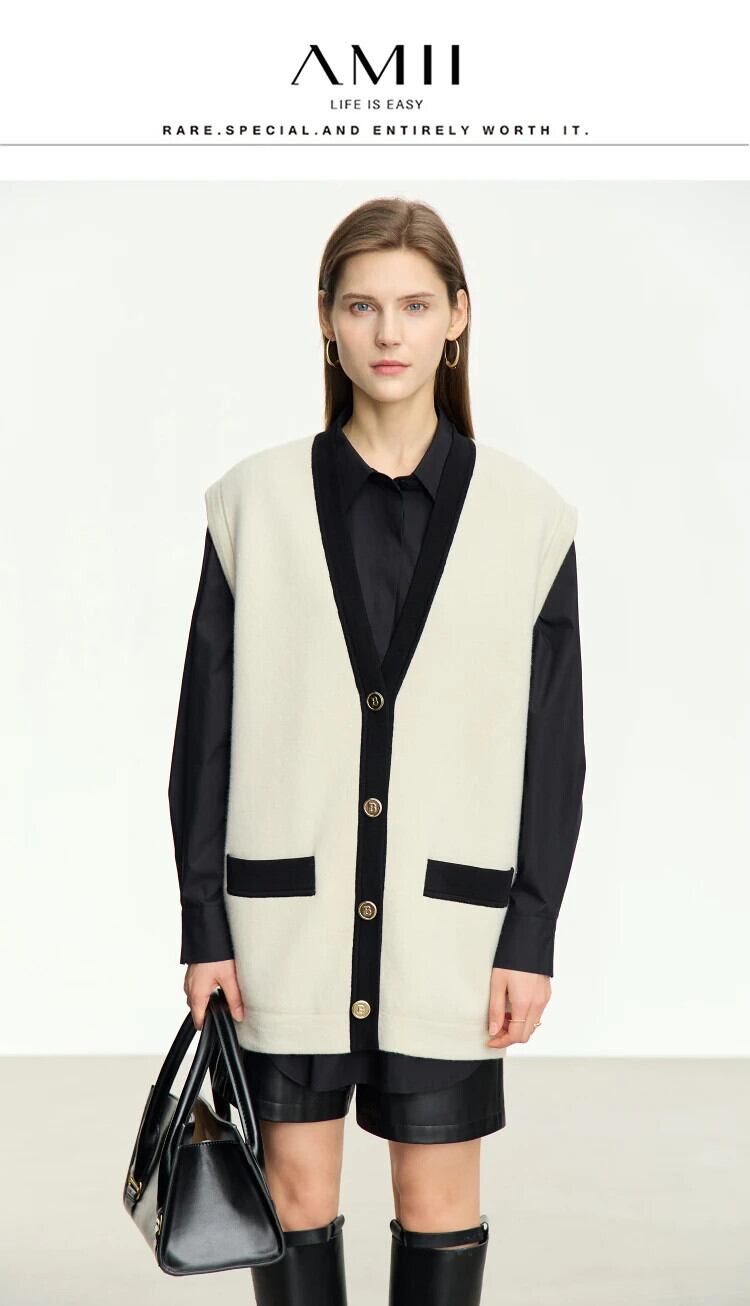 送料無料 アパレル AMII ミニマリズムウールベストジャケット女性 2023 秋 V ネックオフィスレディスプライシングノースリーブポケットルーズベストコート 12323005 オータム 秋物 Vネック 会社 学校 通勤や通学にも AE121222330264082564 | mihatudai(みはつばい)ネットショッピングならmihatudai