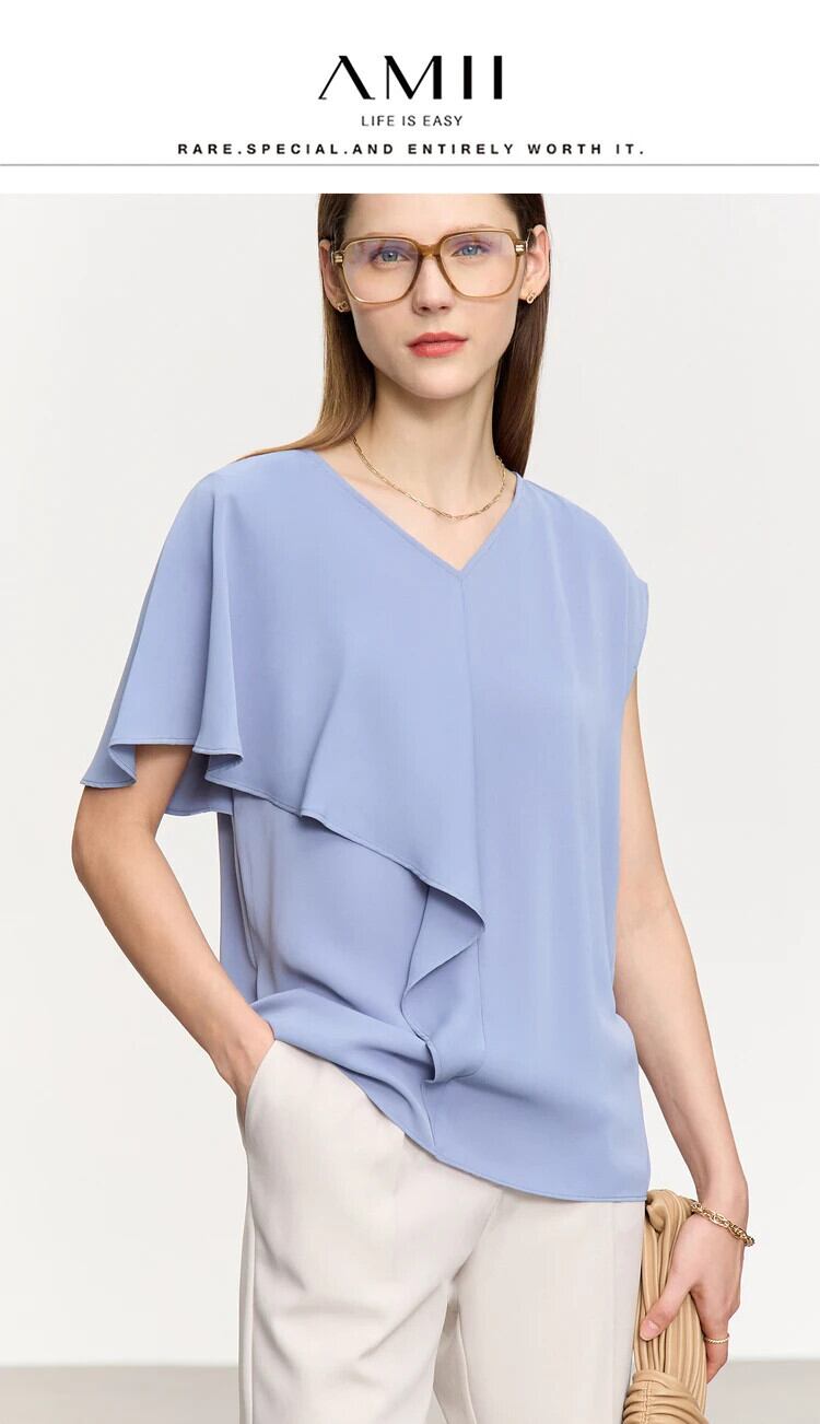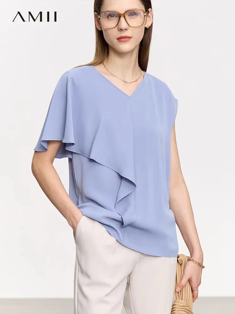 送料無料 アパレル AMII ミニマリズム フレンチ シフォン レディース ブラウス 2023 夏 V ネック 非対称フリル ルーズシック シャツ & ブラウス 12342566 ラッフル サマー 夏物 Vネック AE12122234725752616 | mihatudai(みはつばい)ネットショッピングならmihatudai