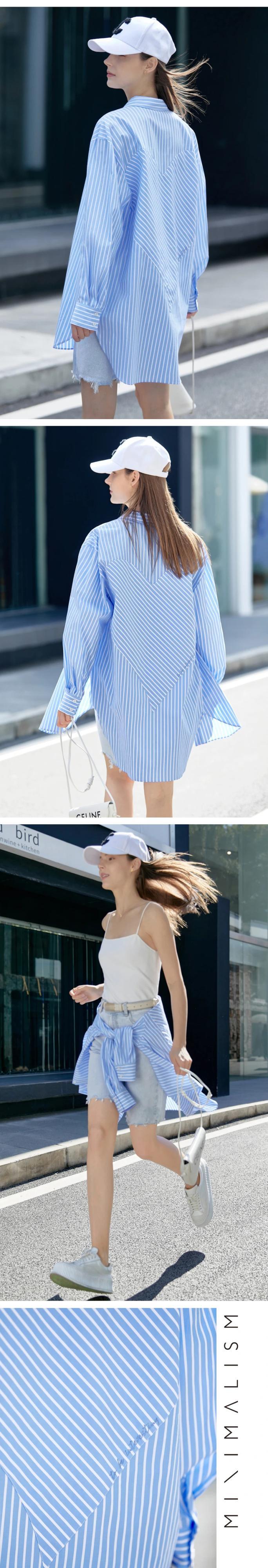 送料無料 アパレル Amii ミニマリストブルーストライプシャツ女性 2023 春ブラウス長袖オーバーサイズシャツスウィートハートルーズトップ 12270016 ロング 大人ガーリー キュート カジュアル スプリング 春物 AE121222363428124327 | mihatudai(みはつばい)ネットショッピングならmihatudai
