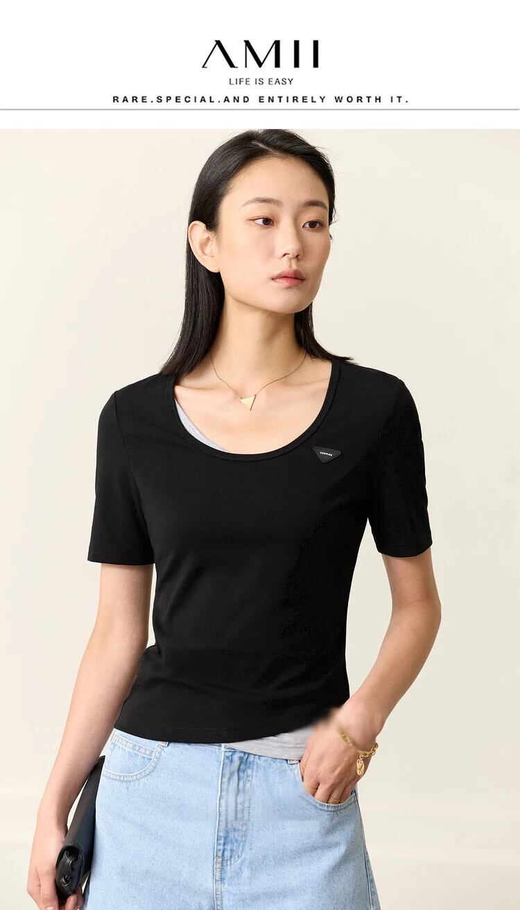 送料無料 アパレル AMII ミニマリズム O ネックプルオーバー Tシャツ 2023 夏スリム弾性綿オフィスレディ Tシャツ女性 12322018 コットン エラスティック 伸縮 サマー 夏物 Oネック 会社 学校 通勤や通学にも AE121222390627527790 | mihatudai(みはつばい)ネットショッピングならmihatudai