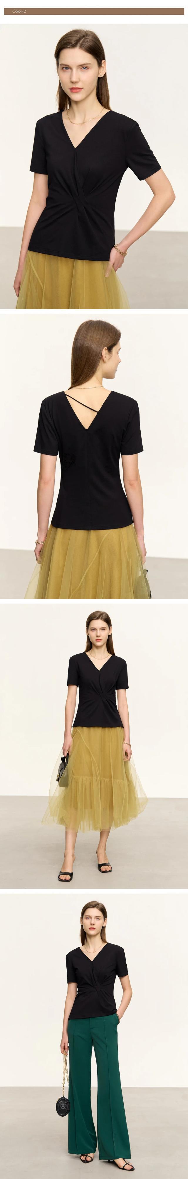 送料無料 アパレル AMII ミニマリズム 2023 夏 V ネック Tシャツ綿無地スリムウエストプリーツスリム Tシャツ女性 12342476 ホワイト コットン サマー 夏物 Vネック ソリッドカラー AE121222326245719905 | mihatudai(みはつばい)ネットショッピングならmihatudai