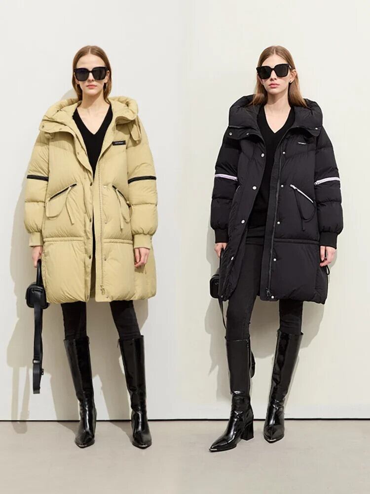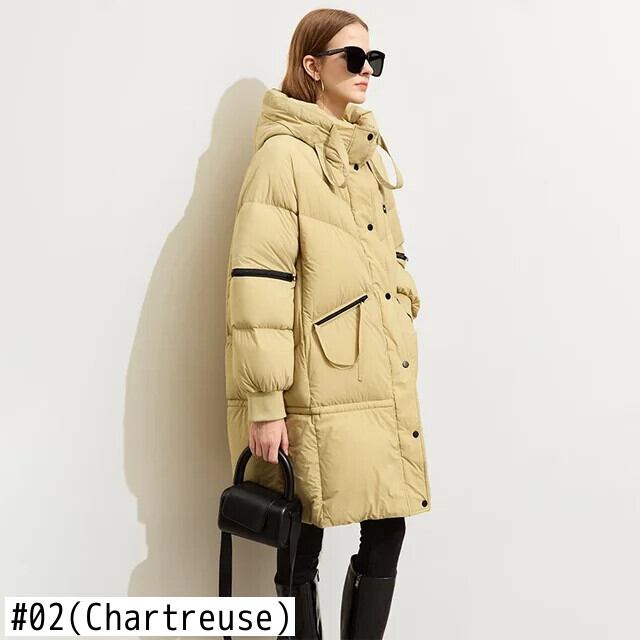 送料無料 アパレル AMII ミニマリズム 2023 フグダウンジャケット女性の冬のオートバイ風暖かいフード付きコントラストカラージッパー生き抜く 12324080 ウィンター 冬物 AE12122232652499643