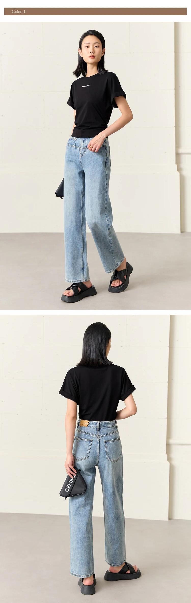 送料無料 アパレル AMII ミニマリズム 2023 夏ロング女性のパンツジーンズ綿 100% ストレートブラックデニムシックな Pantalones 12341216 コットン サマー 夏物 AE121222378628916184 | mihatudai(みはつばい)ネットショッピングならmihatudai