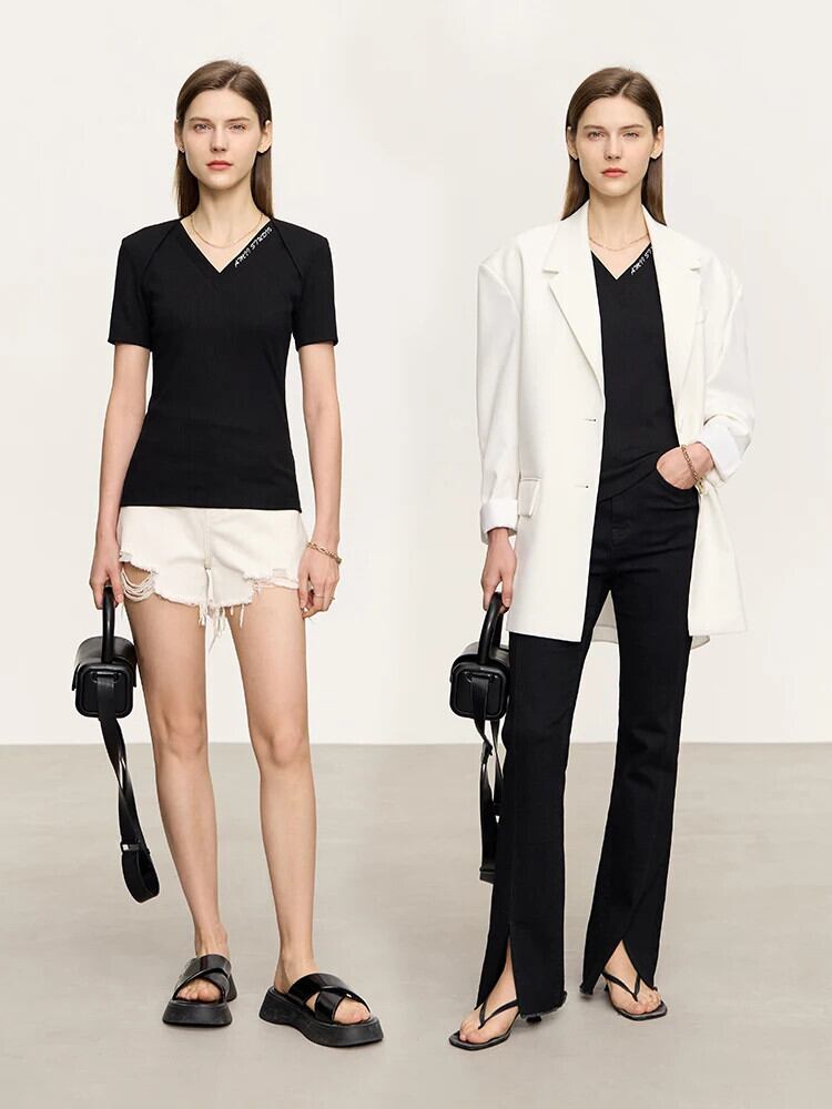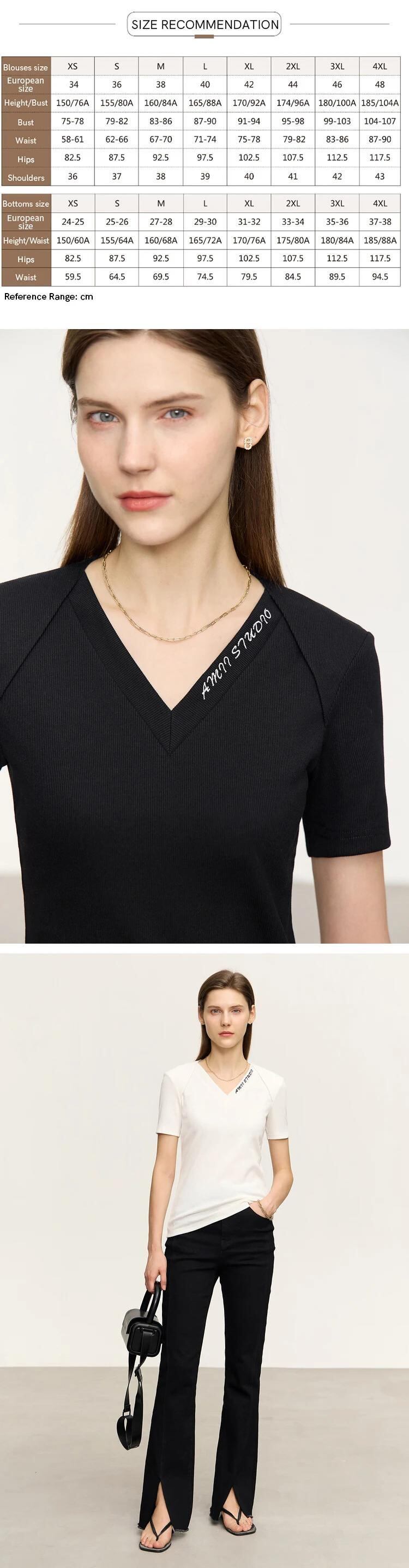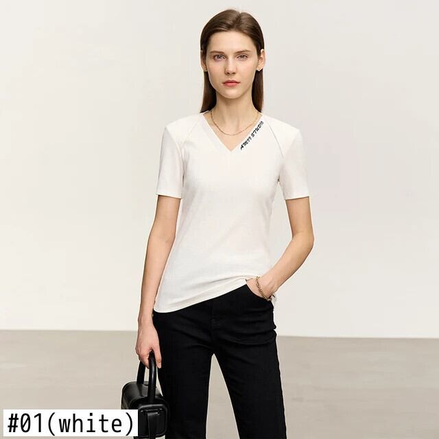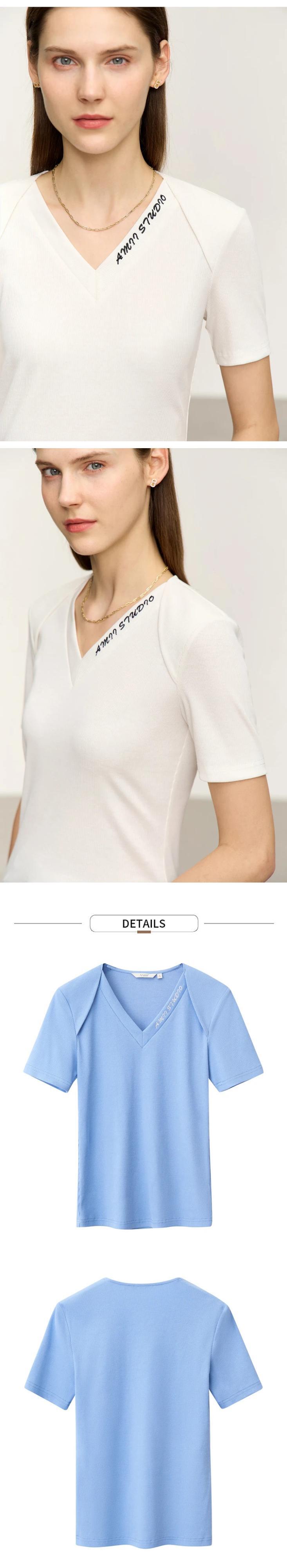 送料無料 アパレル AMII ミニマリズム Tシャツ 2023 夏トップス半袖レター刺繍 V ネックスリム Tシャツ女性 12342564 ショート ハーフスリーブ サマー 夏物 Vネック AE121222390794506035 | mihatudai(みはつばい)ネットショッピングならmihatudai