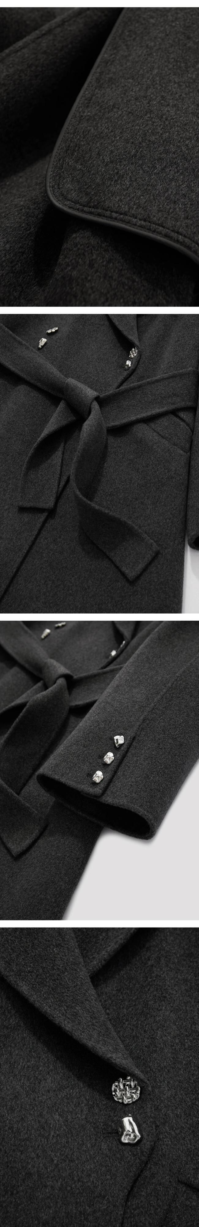 送料無料 アパレル AMII ミニマリストウールコート女性トレンディ 2023 ロングルーズコートベルトラペルバージョン冬アウター 12344078 ウィンター 冬物 ハーネス AE121222382708858541