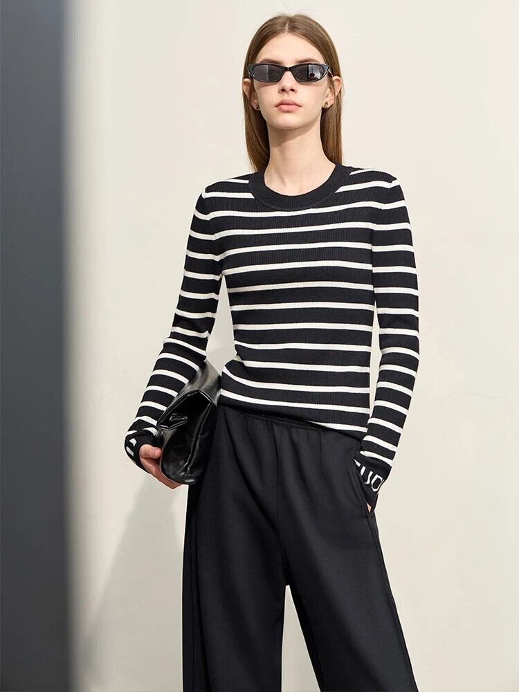 送料無料 アパレル AMII ミニマリストストライプセーター女性 2023 秋スリムフィットベーススプライシング O ネックフルスリーブニットトップ 12344110 オータム 秋物 Oネック AE121222330867392961 | mihatudai(みはつばい)ネットショッピングならmihatudai