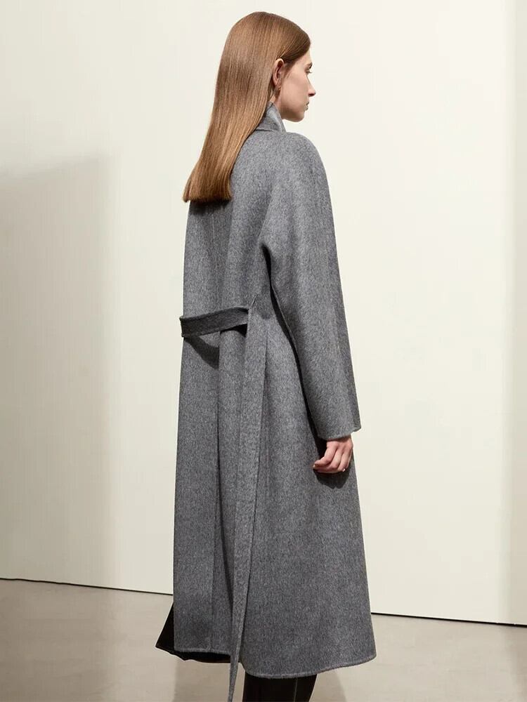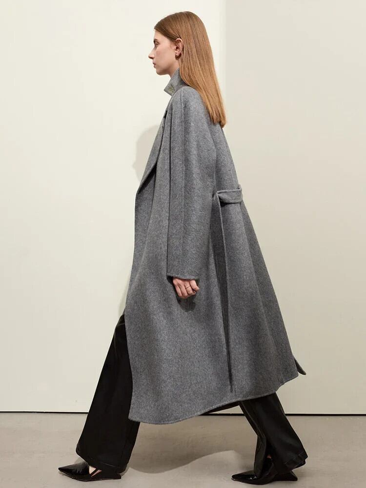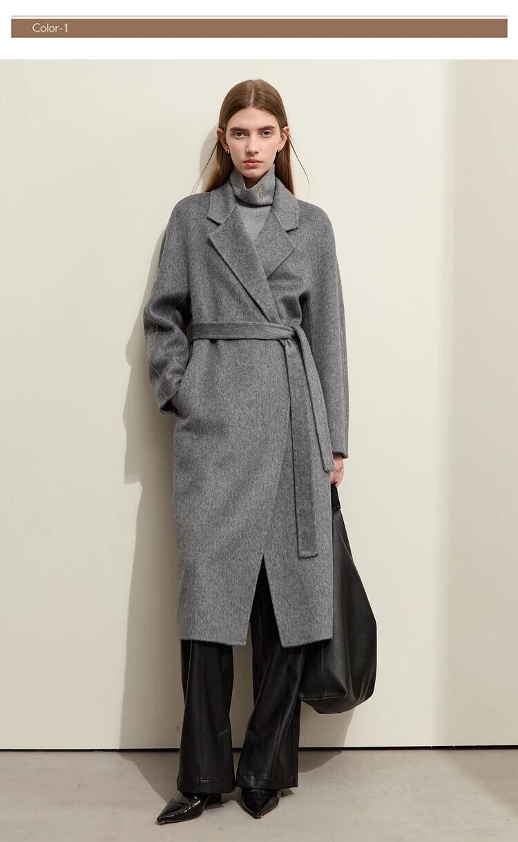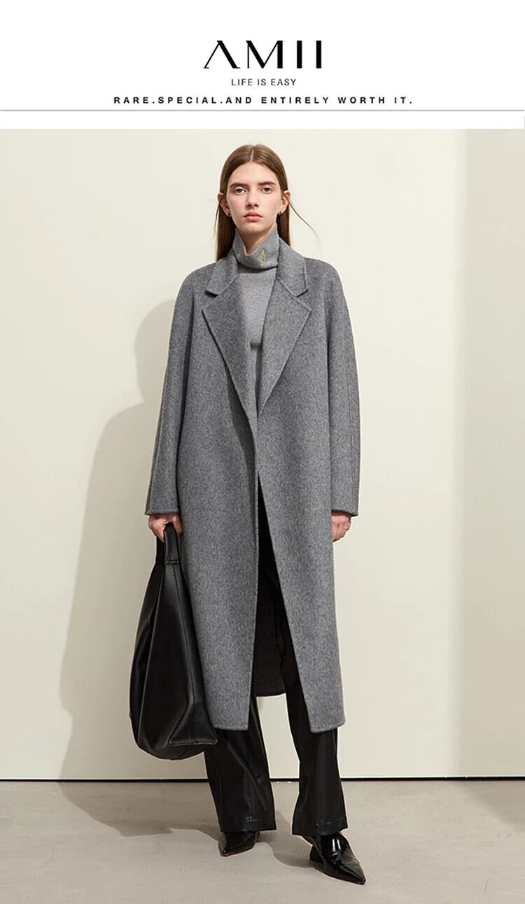 送料無料 アパレル AMII ミニマリスト女性のウールコート 2023 冬シープウール両面ベルトバスローブスタイルロングトレンディな居心地の良いジャケット 12344229 ウィンター 冬物 ハーネス AE12122239192583076