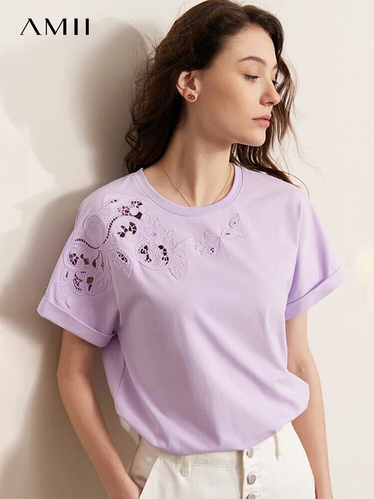 送料無料 アパレル AMII ミニマリズム Tシャツ女性 2023 夏 Audal 綿半袖 O ネック Tシャツ中空刺繍トップスブラウス 12332009 ショート コットン ハーフスリーブ サマー 夏物 Oネック AE121222387934212591 | mihatudai(みはつばい)ネットショッピングならmihatudai
