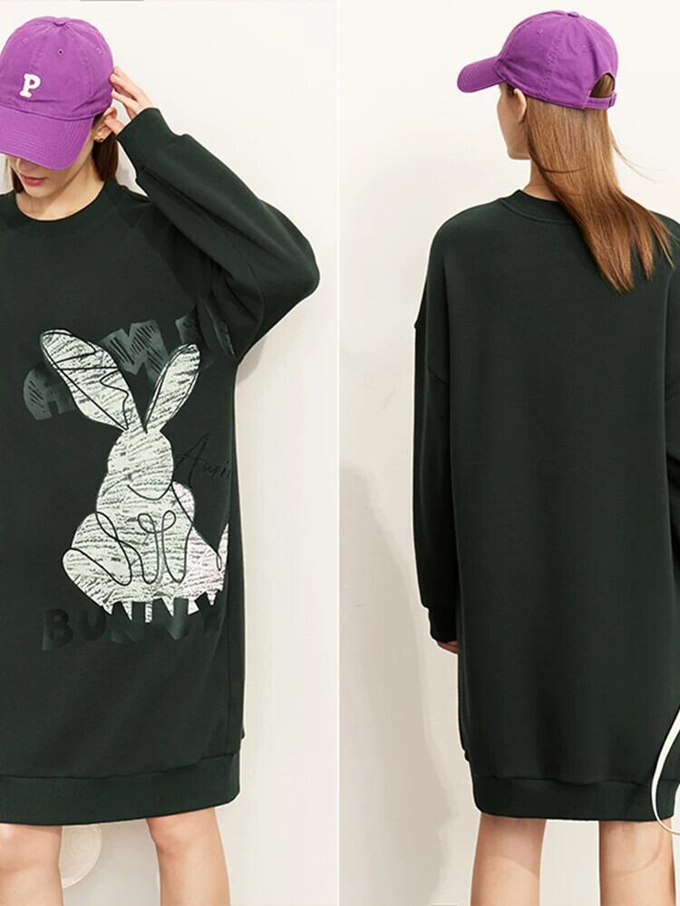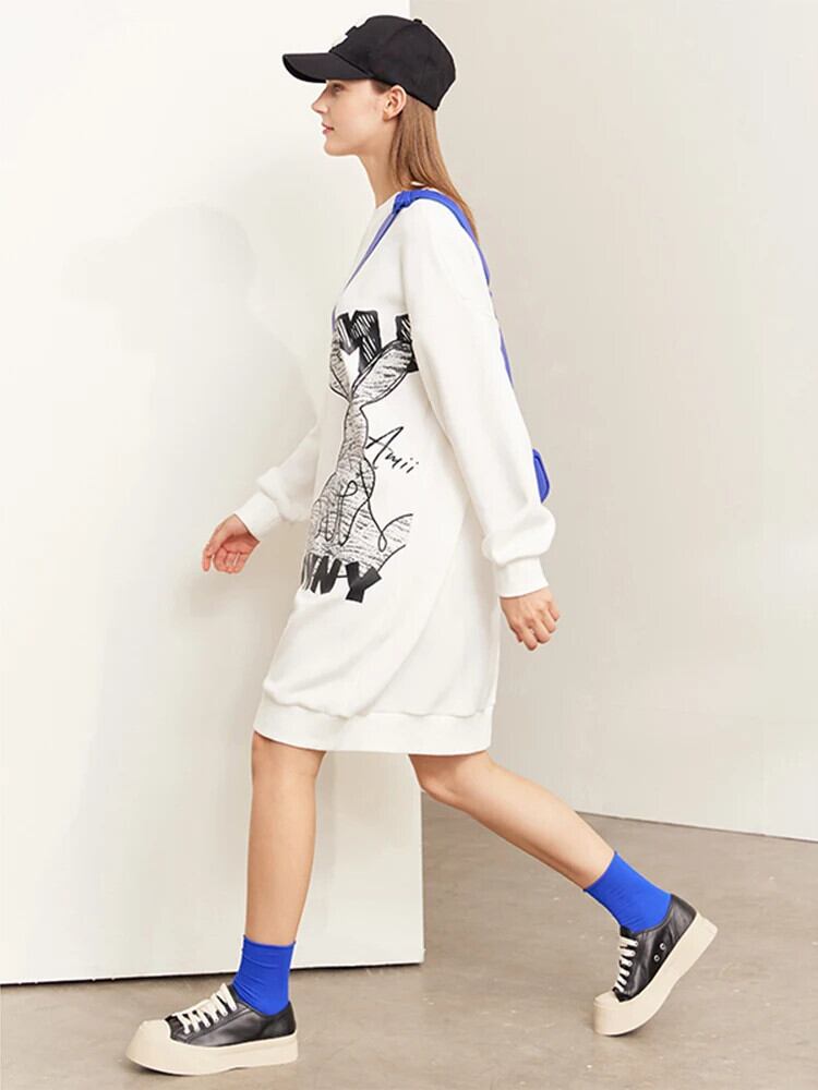 送料無料 アパレル AMII ミニマリズム 2022 秋のセータードレス女性ルース Oneck 肥厚ドレス漫画プリント Vestidos 12260066 オータム 秋物 AE121222391763758929