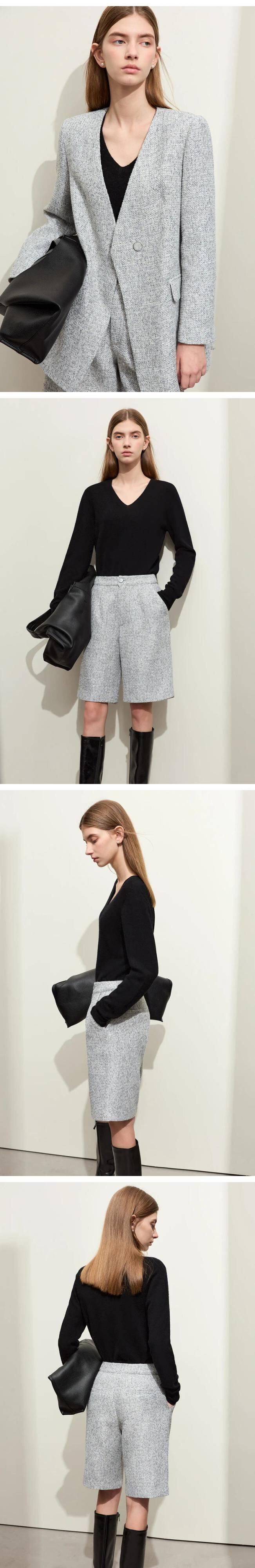 送料無料 アパレル AMII ミニマリストショートセット女性秋の香りの膝丈ストレートパンツルーズ V ネックスーツ 2 点セット 12343453 オータム 秋物 Vネック AE121222336094726833