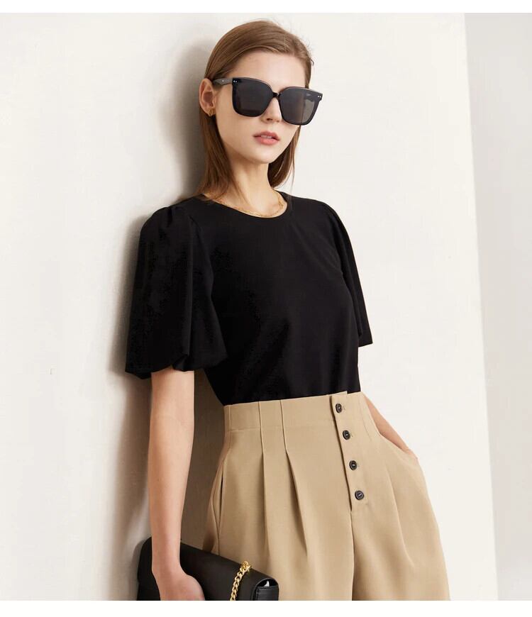 送料無料 アパレル AMII ミニマリズム女性のショーツ 2023 夏シャーリングオフィスレディ黒パンツ女性ストレートパンタロン 12270465 ブラック サマー 夏物 ブルマー 会社 学校 通勤や通学にも AE121222324449204691 | mihatudai(みはつばい)ネットショッピングならmihatudai