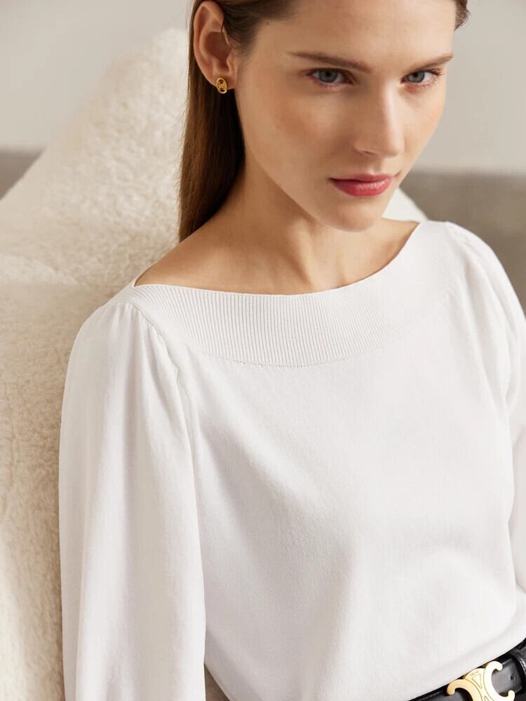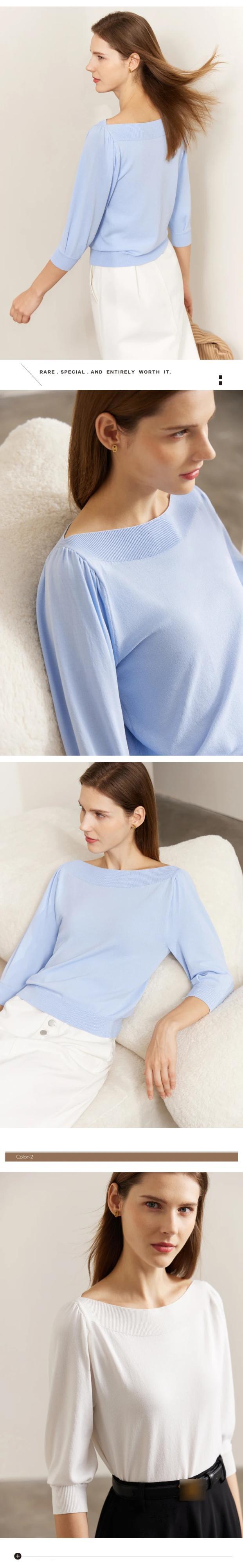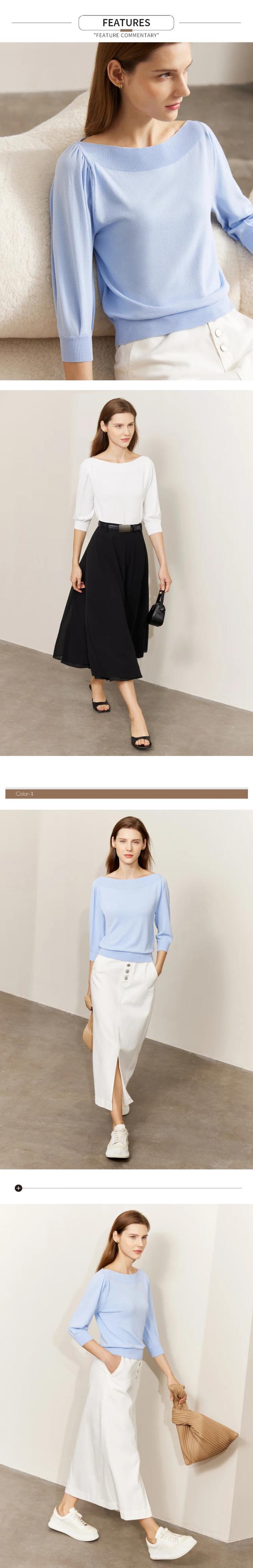 送料無料 アパレル AMII ミニマリズムニットトップス女性 2023 春七分袖セータースラッシュネックショートスリムフィットトップ 72321018 スプリング 春物 AE121222395591927864 | mihatudai(みはつばい)ネットショッピングならmihatudai
