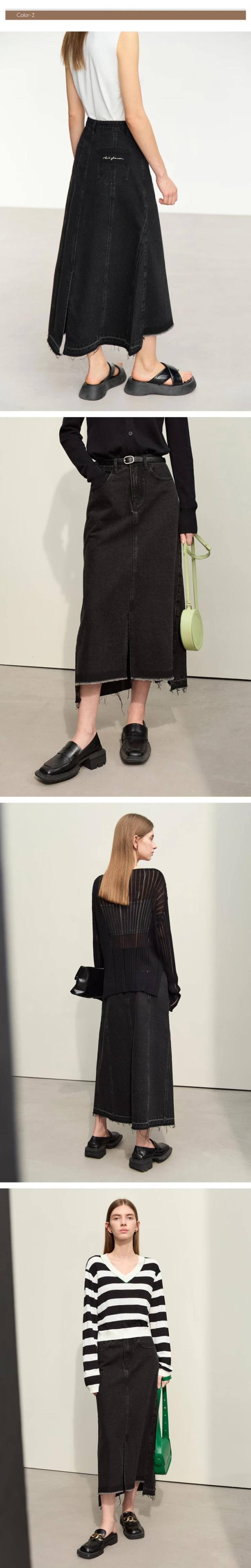 送料無料 アパレル AMII ミニマリズム A ラインコットンデニムスカート女性 2023 夏スプリットオフィスレディダメージロングスカート 12351022 サマー 夏物 Aライン 会社 学校 通勤や通学にも AE121222325429001943 | mihatudai(みはつばい)ネットショッピングならmihatudai