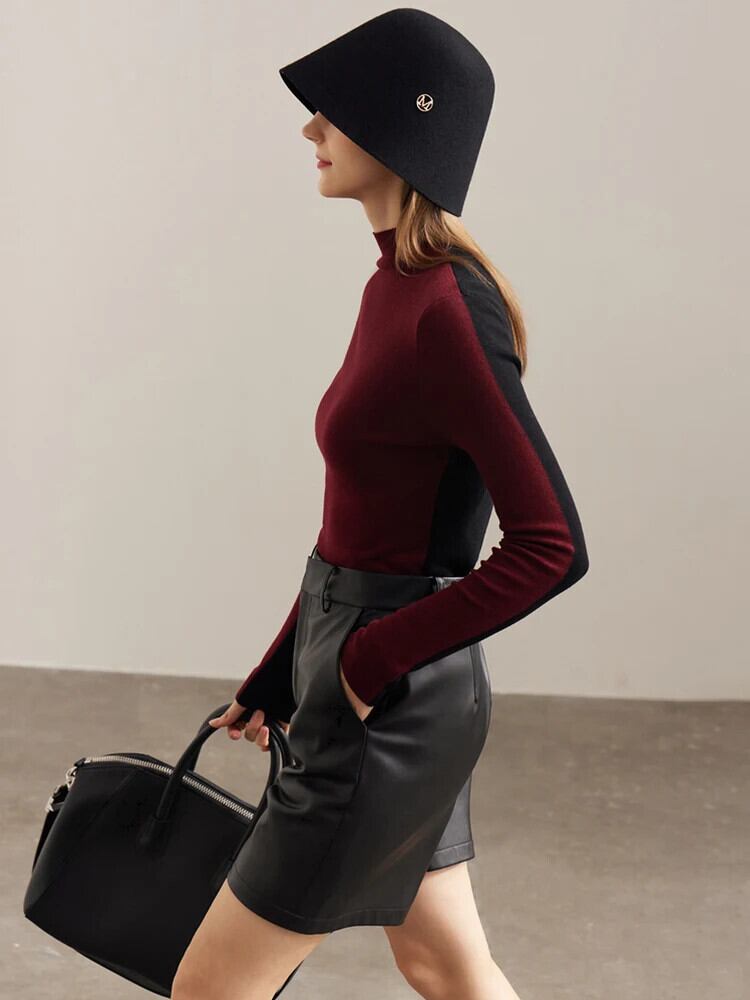 送料無料 アパレル AMII ミニマリストセーター女性 2023 スプライシングモックネック秋スリムボトムトップスオフィスレディフルスリーブプルオーバー 12343349 オータム 秋物 会社 学校 通勤や通学にも AE121222342638852140 | mihatudai(みはつばい)ネットショッピングならmihatudai
