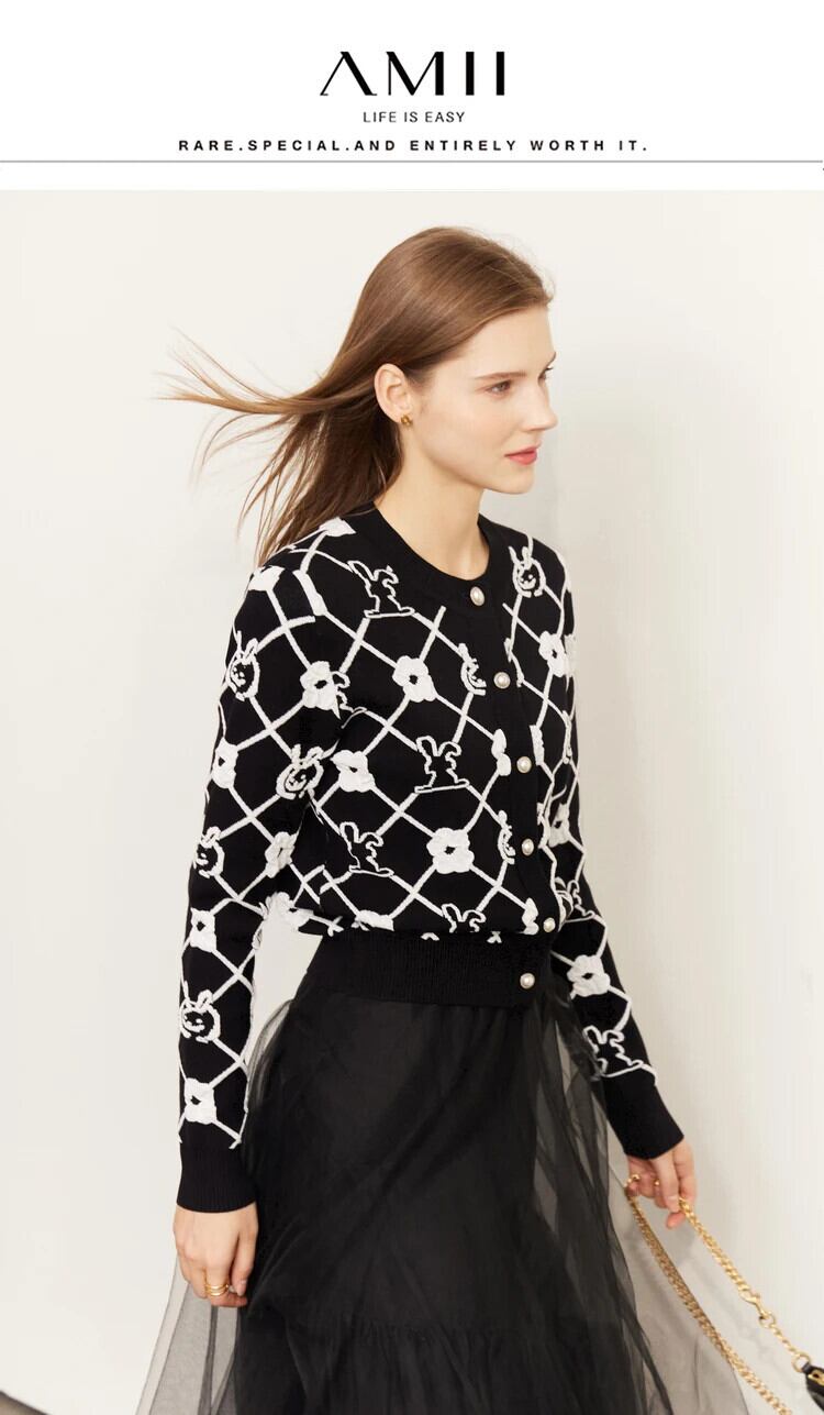送料無料 アパレル AMII ミニマリズムニットカーディガン女性 2022 秋オールマッチパネルジャカード黒ショートセータートップス 12241102 ブラック オータム 秋物 AE121222365270302053 | mihatudai(みはつばい)ネットショッピングならmihatudai