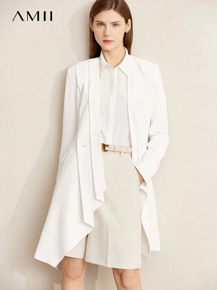 送料無料 アパレル AMII ミニマリズムスーツドレス女性 2022 秋ソリッド通勤 V ネック非対称ドレス 12270154 オータム 秋物 Vネック ソリッドカラー AE121222351110030690