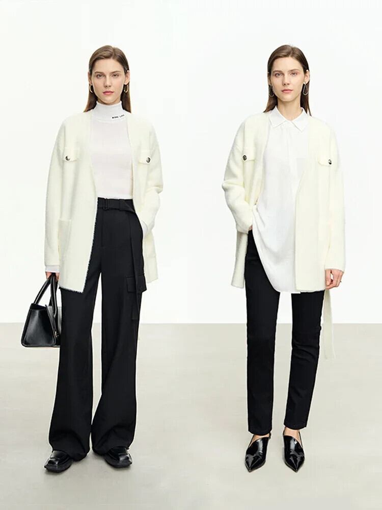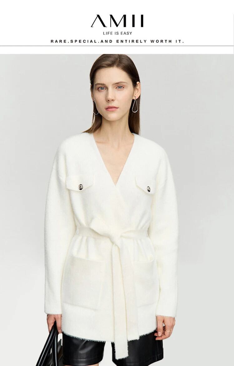 送料無料 アパレル AMII 小さな香りウールニット女性 2023 冬ルーズ V ネックベルト付きロングストレートレディレトロカーディガン 12353051 ウィンター 冬物 ハーネス Vネック AE121222356991148571 | mihatudai(みはつばい)ネットショッピングならmihatudai