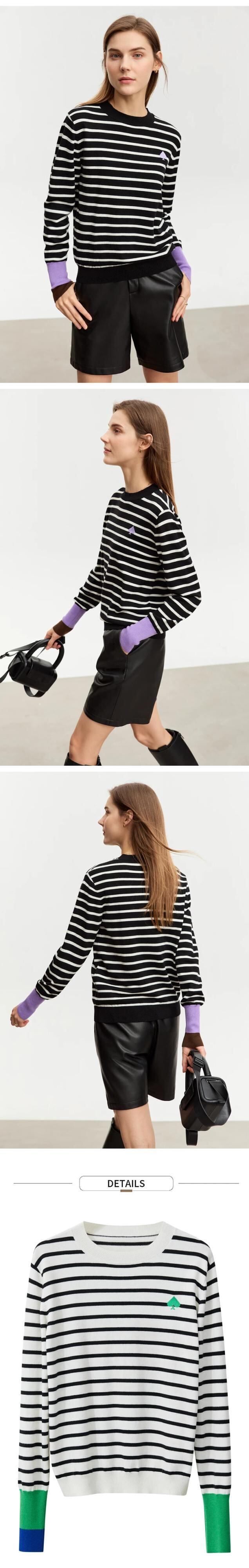 送料無料 アパレル AMII ミニマリストストライプセーター女性 2023 秋ルーズレター刺繍ウール O ネックストリートボトムシャツ 12323174 オータム 秋物 Oネック AE121222347430786230 | mihatudai(みはつばい)ネットショッピングならmihatudai