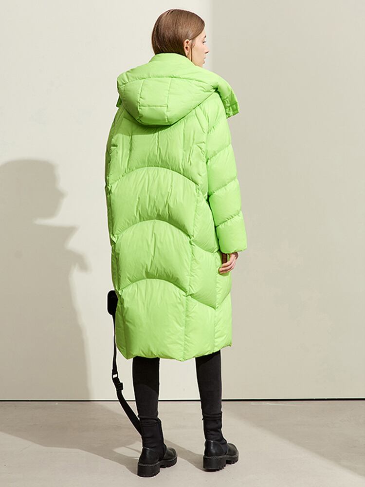 送料無料 アパレル AMII レディース アヒル フード付きダウンジャケット 2023 冬 ロングダウンコート ジッパー オフィスレディ 取り外し可能なフード アウター 12324027 ウィンター 冬物 会社 学校 通勤や通学にも AE121222354293284828
