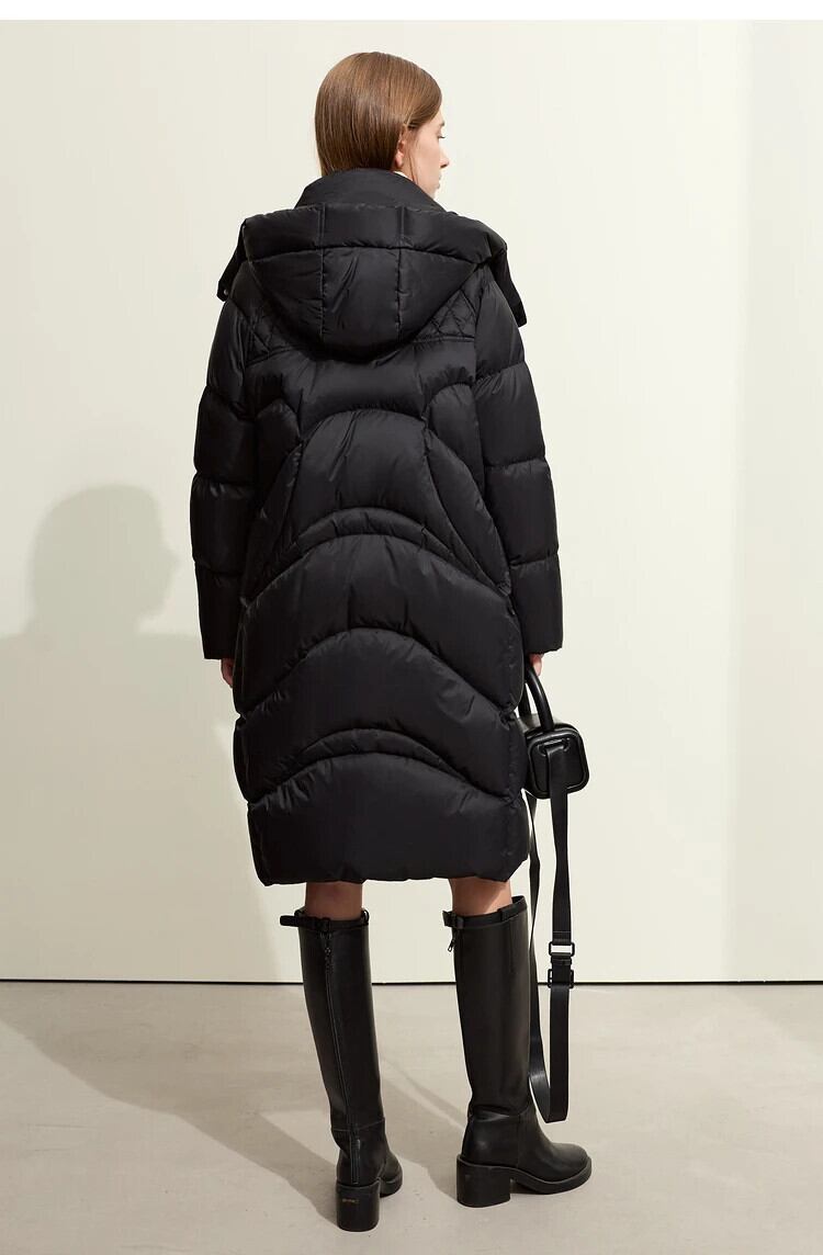 送料無料 アパレル AMII 2023 レディース ダウン パファー コート 冬 スタンドカラー ラグラン スリーブ フード付き ルーズ ロング ストリート アウター 12344036 ウィンター 冬物 AE121222377778620062