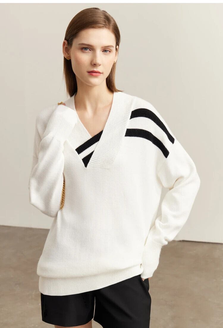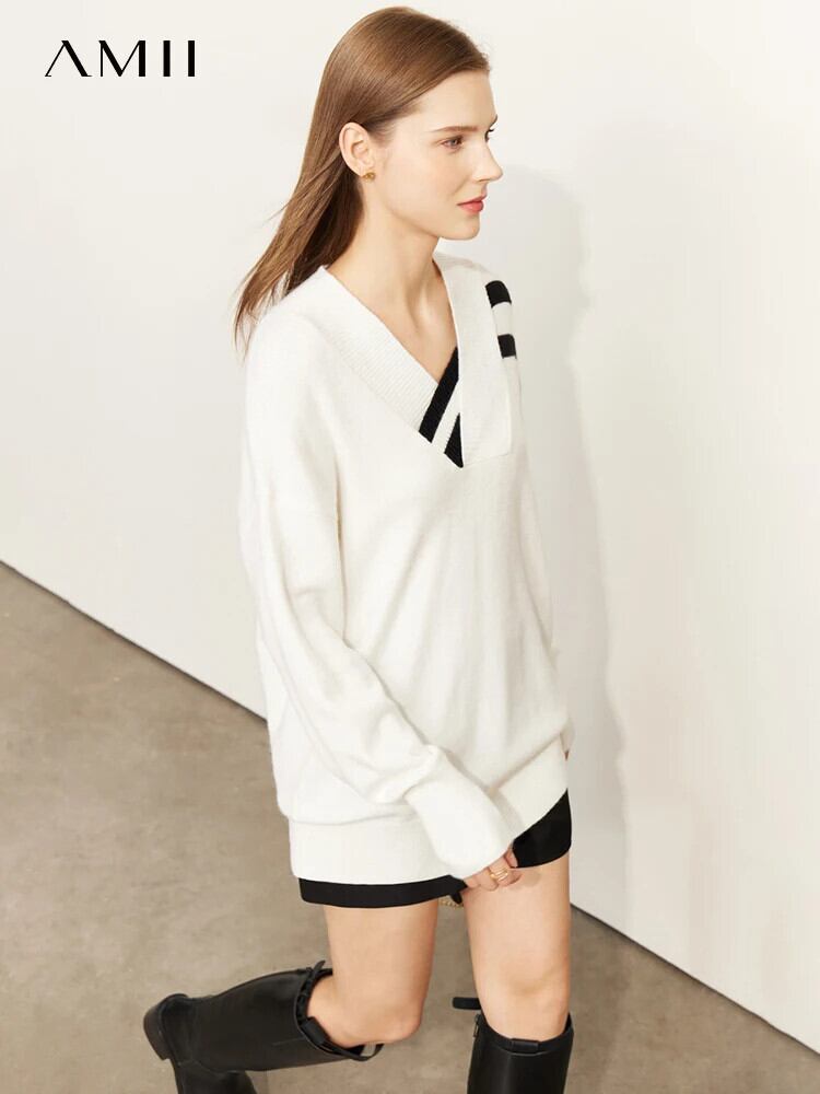 送料無料 アパレル AMII ミニマリズム春セーター女性 2022 因果ルーズ V ネックフルスリーブストリップトップスパッチワーク服 12270539 スプリング 春物 AE121222379164114291 | mihatudai(みはつばい)ネットショッピングならmihatudai