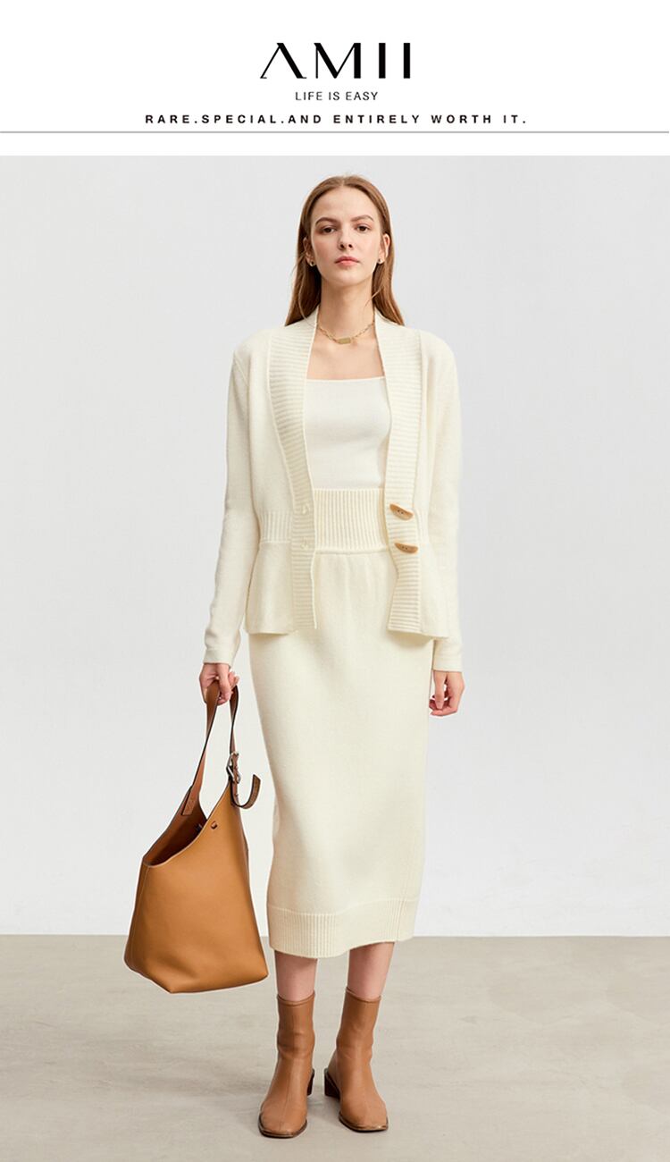 送料無料 アパレル AMII 2023 女性のドレスセット冬 V ネックウールカーディガンウエストソリッドスカートウールスーツ 2 点セット 12344272 ウィンター 冬物 Vネック ソリッドカラー AE121222326016614506 | mihatudai(みはつばい)ネットショッピングならmihatudai