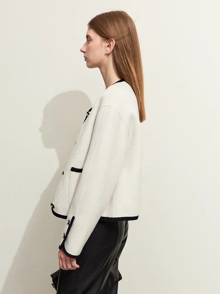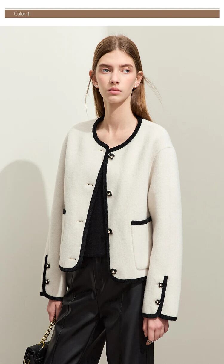 送料無料 アパレル AMII ミニマリストトレンディクルーネック女性ウールコート 2023 冬コントラストステッチ両面香りの風生き抜く 12324082 ウィンター 冬物 AE121222342699462247