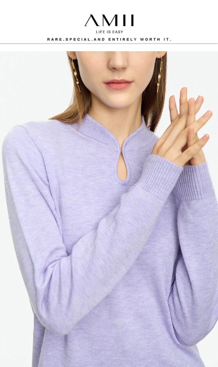 送料無料 アパレル AMII ミニマリズムセーター女性 2023 秋緩い暖かい U 襟プルオーバー長袖ソリッド中空アウトトップ 12343080 ロング オータム 秋物 ソリッドカラー AE121222394656777574 | mihatudai(みはつばい)ネットショッピングならmihatudai