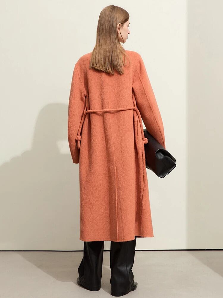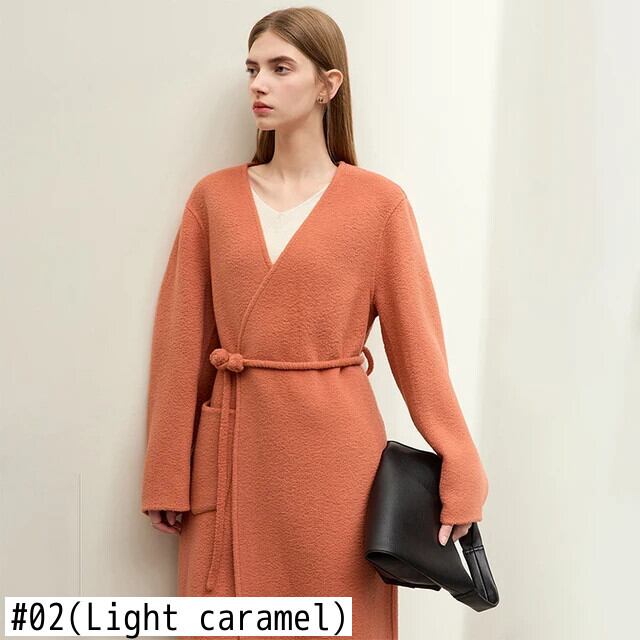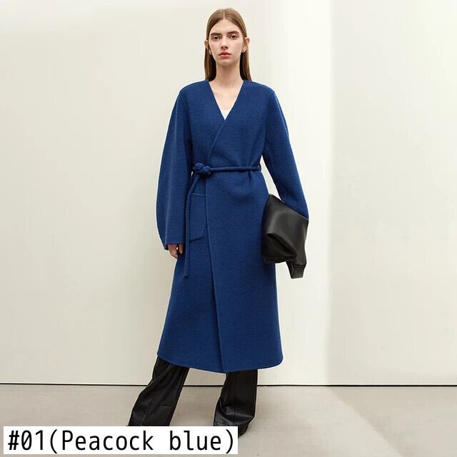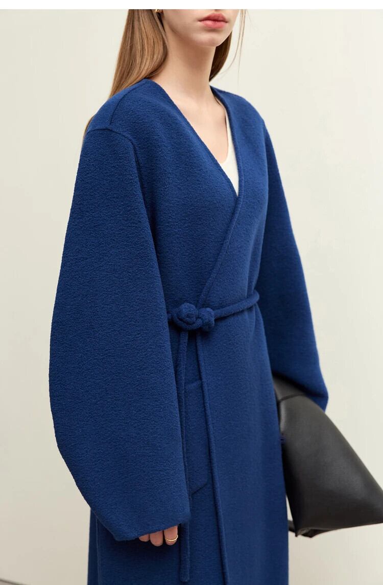 送料無料 アパレル AMII ミニマリズム 2023 ウールコートの女性の冬中国バックルウエストロープ V ネック両面ヴィンテージブレンド 12374004 ウィンター 冬物 Vネック ビンテージ AE12122233128542200