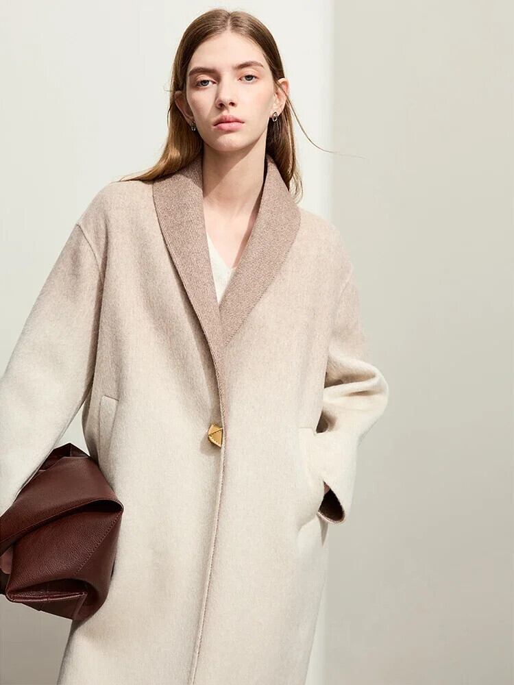 送料無料 アパレル AMII ミニマリストウールコート女性 2023 冬シープウール両面グラデーションシングルボタンロングコート 12344252 ウィンター 冬物 AE12122233044903609